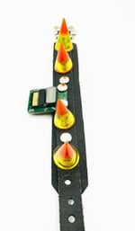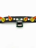 Kandi Korn leather cuff/two toned resin spikes and a circuit piece/ assembled w/a “internet” key from a rubber keyboard.
