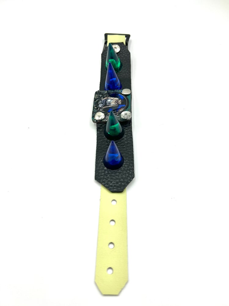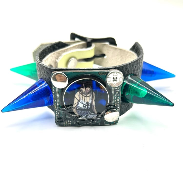 PlayStation 2 motherboard Lain cuff , handmade resin spikes + dipped in resin.