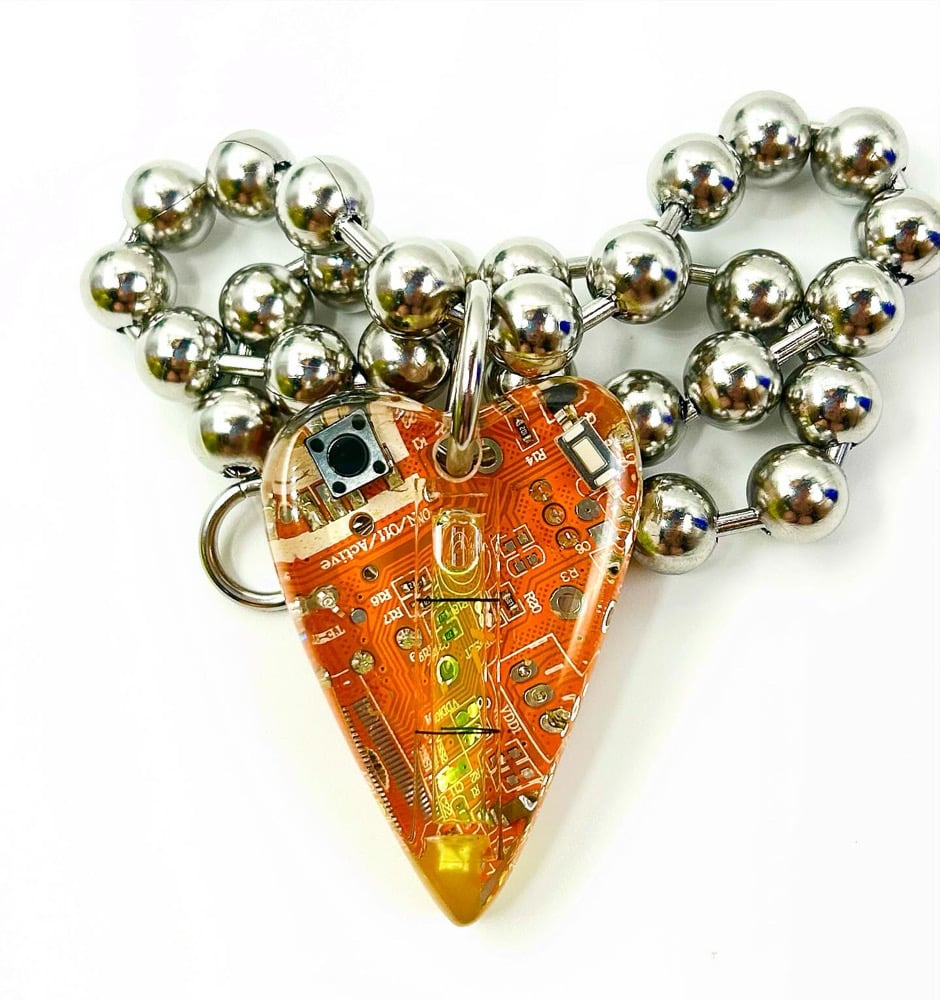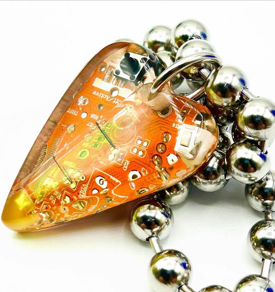 Orange circuit heart dipped in resin /hand shaped+polished.