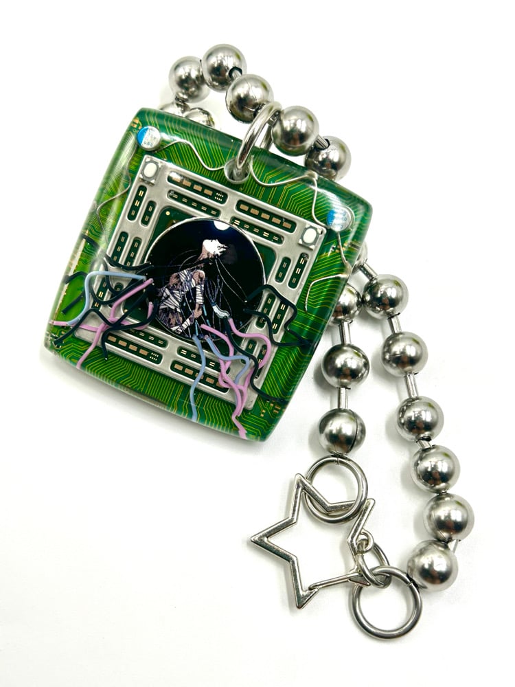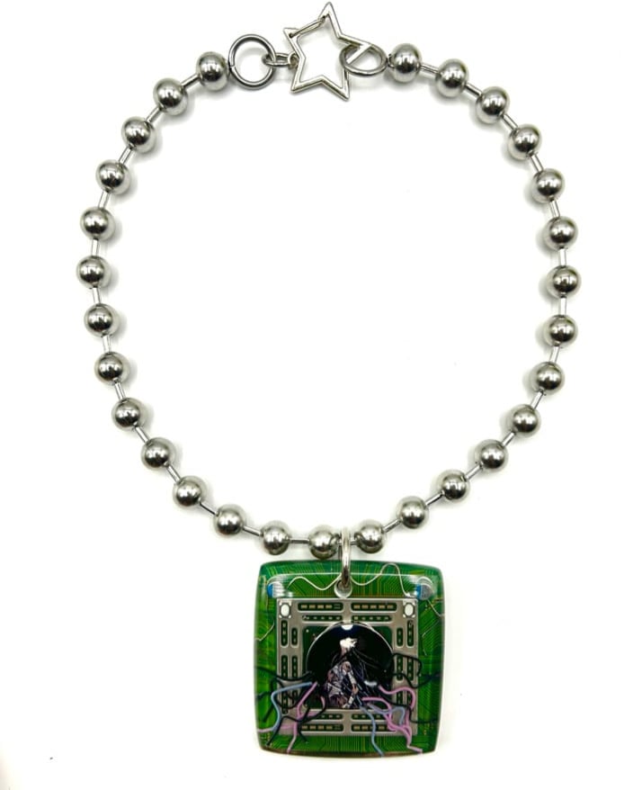 PlayStation 3 motherboard Lain pendant, hand shaped/polished +dipped in resin.