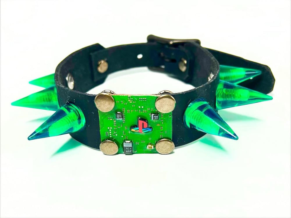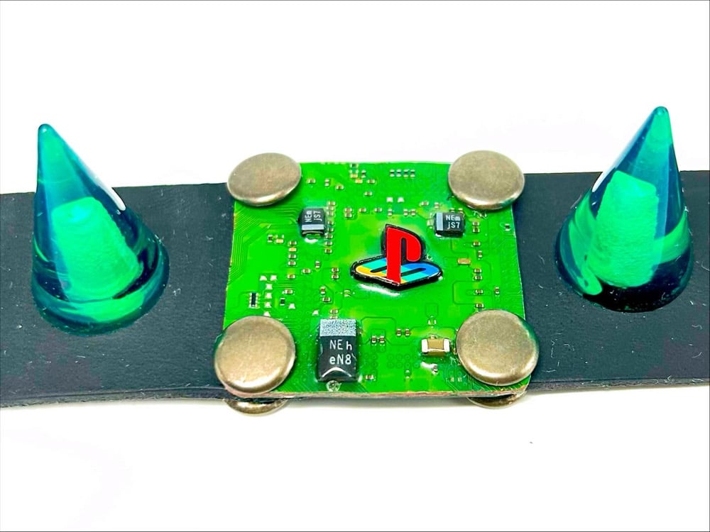 assembled with a ps1 circuit board and PS3 console emblem/ Translucent green spikes