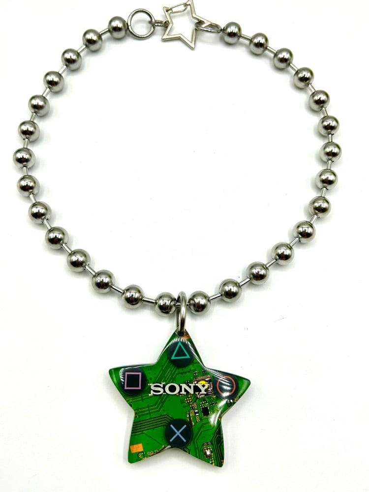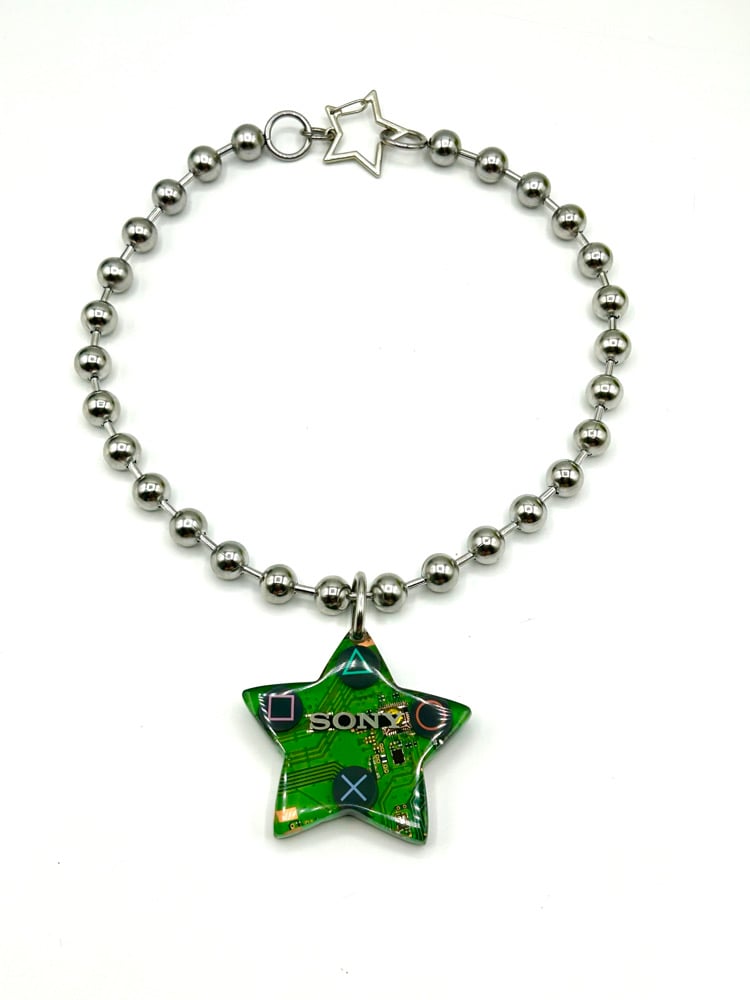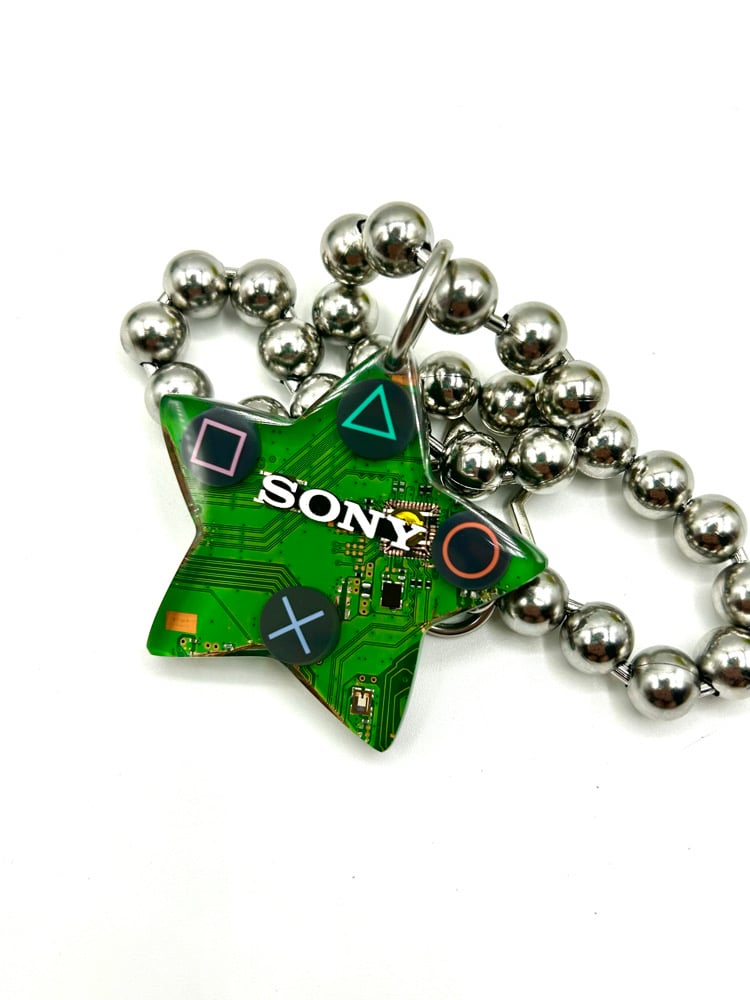 PlayStation 3 motherboard/ps2 controller buttons star pendant, hand shaped/polished +dipped in resin.