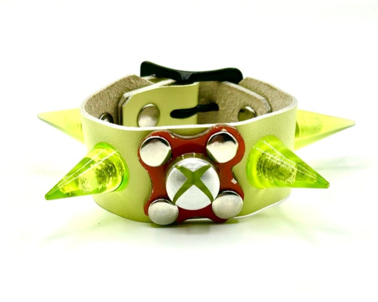 Lime green Xbox home button cuff + dipped in resin.
